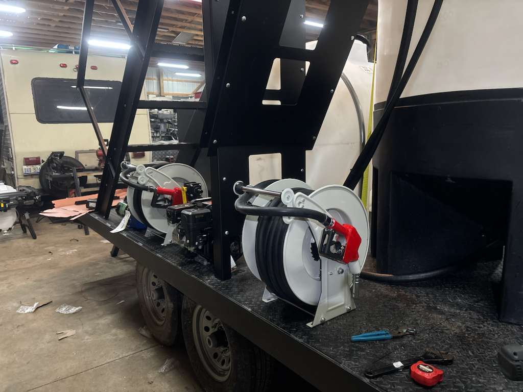 Two 50 foot auto-retractable hose reels for freshwater and chemical delivery keep the deck organized and dramatically reduce turnaround time between flights.